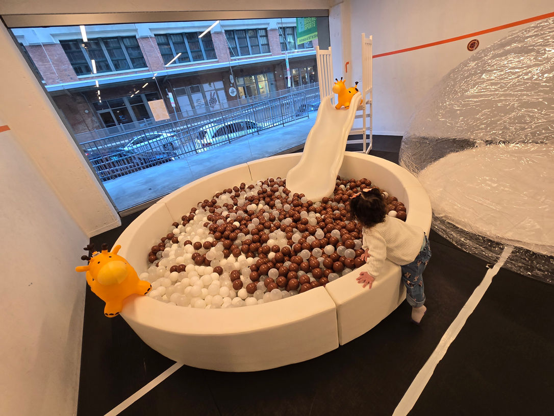 Our ball round ball put is the ultimate party highlight. Safe, stylish and endlessly fun for kids to jump and play! Ball pit has a diameter of 9ft. Come with 2 hoppers, rocker, softplay tunnel and blocks.